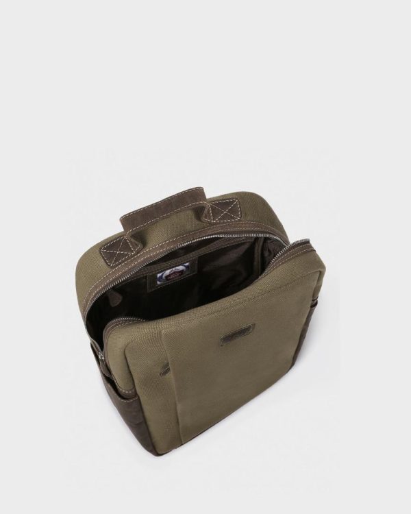 —The top handle is crafted in khaki canvas, and makes for an easy alternative way of carrying your bag.
