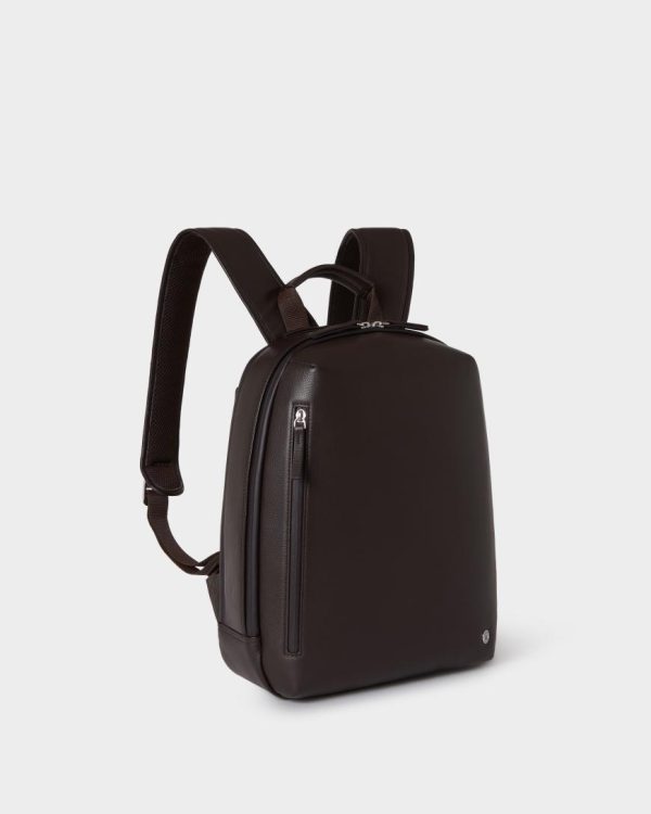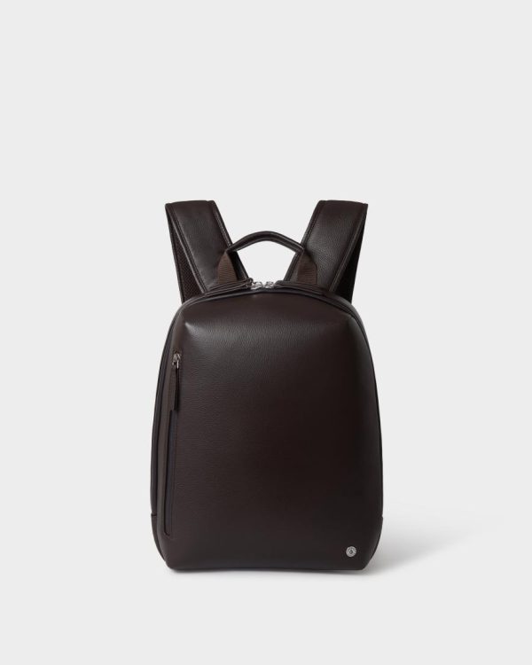 This sleek and versatile leather backpack is designed to keep up with modern life. Expertly crafted from supple leather and technical nylon for enhanced comfort, it features two padded sections for your tech, an elasticated water bottle holder, dedicated sections for pens, slip and zipped pockets, and a key strap – all within an A4-compatible interior. Its slimline profile is ideal for commuting, while discreetly placed external pockets provide secure, easy access to essentials.
