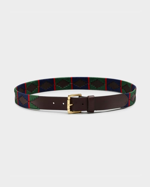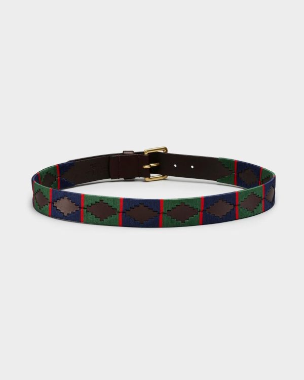 Men Belts | Osprey London The Mendoza Leather Jeans Belt Green & Navy
