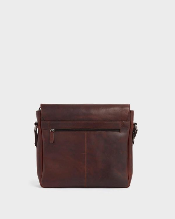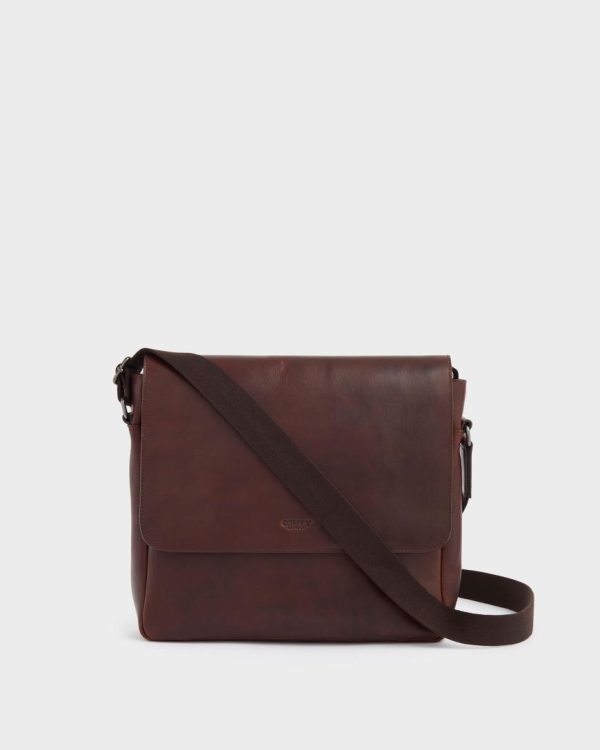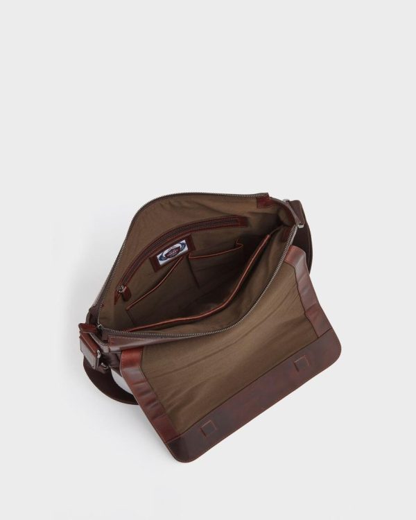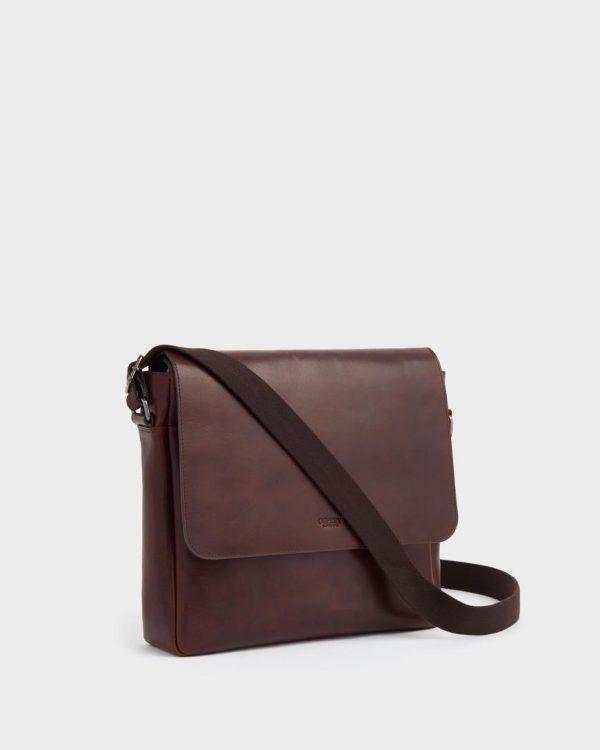 —Tech friendly OSPREY LONDON messenger bag, expertly crafted in Saddle leather.
