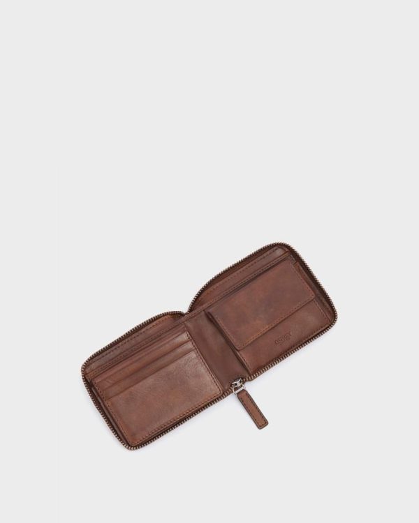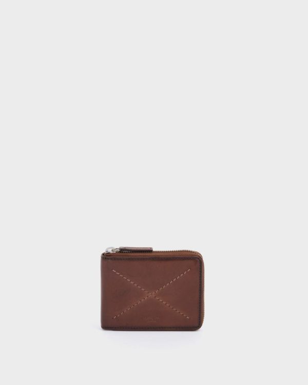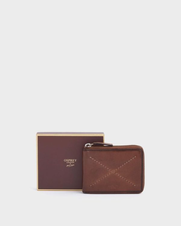 —OSPREY LONDON zipround leather wallet with coin section and RFID protection to keep card data safe.