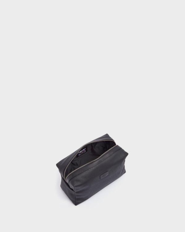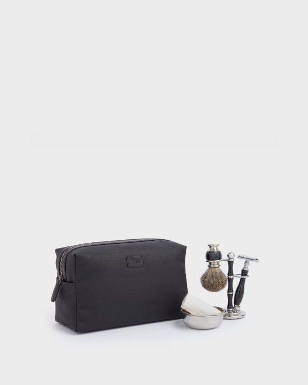 Men Wash Bags | Osprey London The Grantham Large Leather Washbag Black & Black
