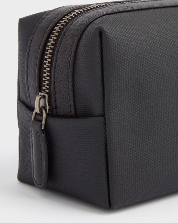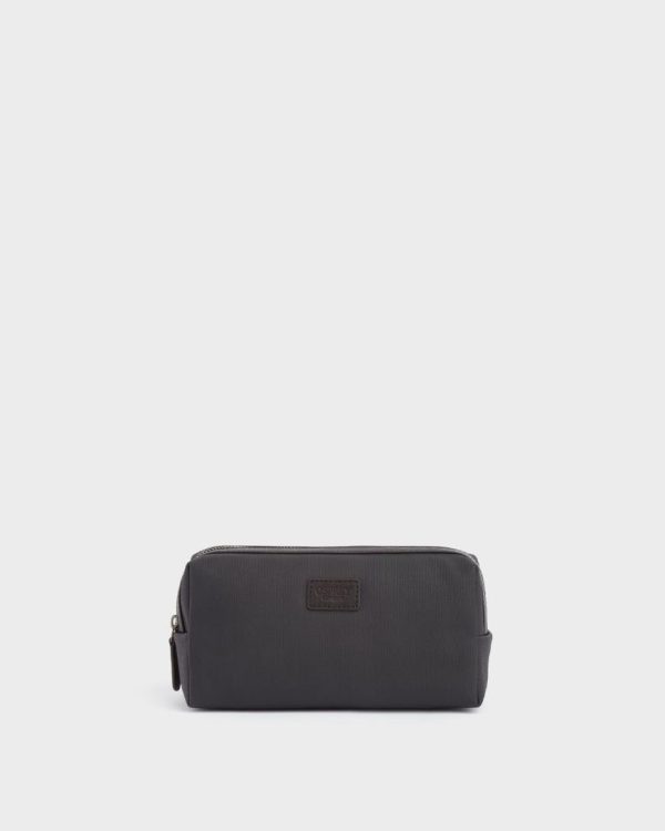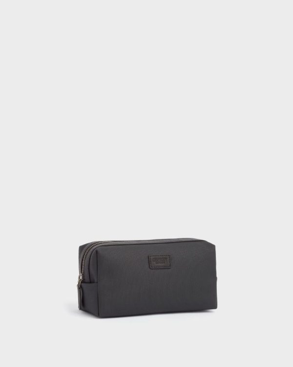 —The front of the washbag features the OSPREY LONDON logo embossed on an appliqued leather tab.