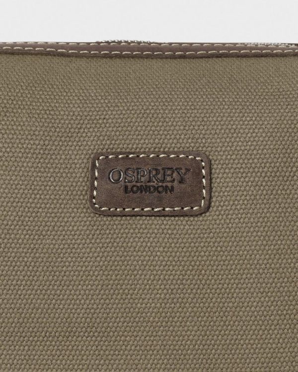 —The front of the bag bears the OSPREY LONDON embossed leather logo patch.
