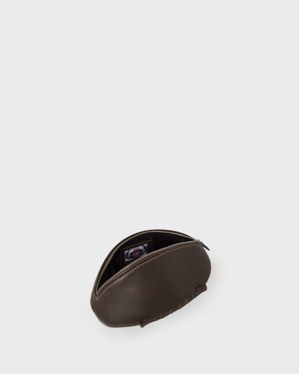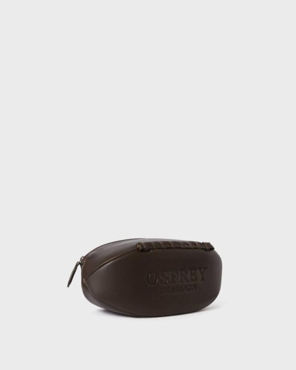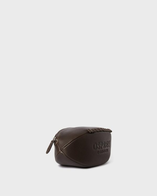 —Handcrafted in characterful Snuffed Grain leather in the same way and as the same size as a traditional rugby ball, with four leather panels laced along the bottom.