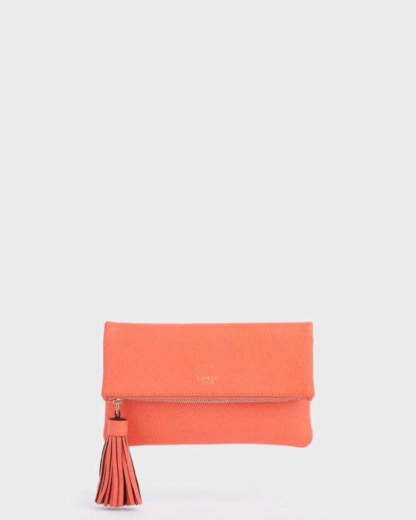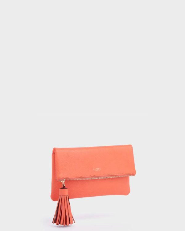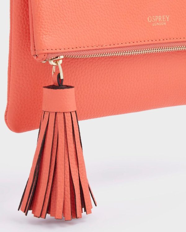 Women Clutch & Evening | Osprey London The Bexley Leather Clutch Coral