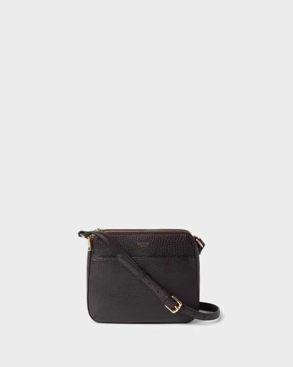 If you like a place for everything, The Buckley Crossbody is for you. Handcrafted in Natural Grain leather, this neat crossbody bag with flat sides and gently rounded corners not only features a large pocket on the front, but the interior is also divided into three separate compartments. Features a fully adjustable flat leather strap, designed to be worn across the body or on the shoulder.