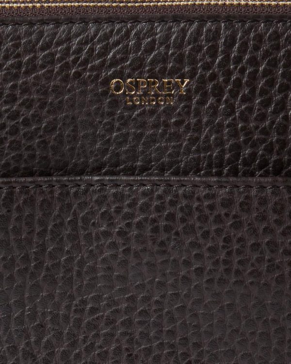 —The front of the bag carries the gold embossed OSPREY LONDON logo and has a discreet slip pocket with a gold metal magnetic clasp fastening.