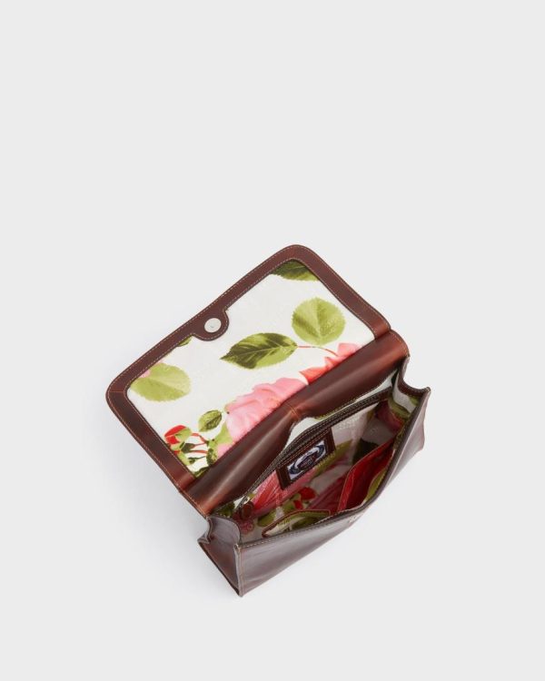 —A4 compatible interior lined in English Rose jacquard fabric with two slip pockets and a zipped pocket with leather zip pull.