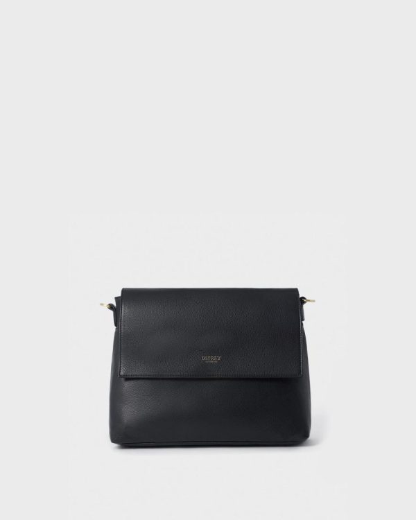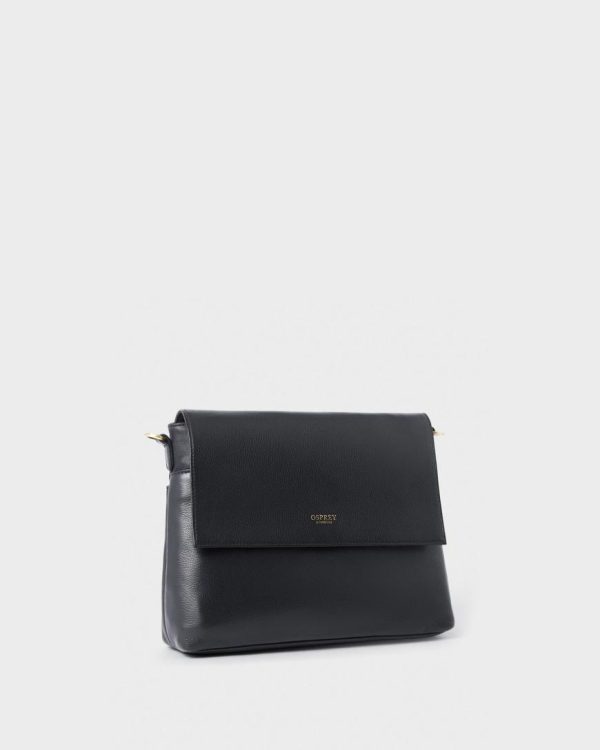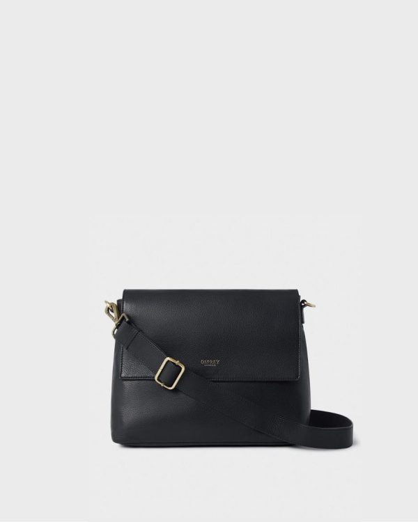 —OSPREY LONDON messengerstyle bag with foldover flap with smart selfcoloured stitching, with antique brass finished hardware throughout.