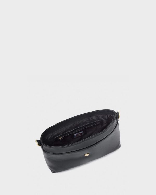 —The bag secures with a magnetic popper closure and is lined with black OSPREY LONDON jacquard fabric.