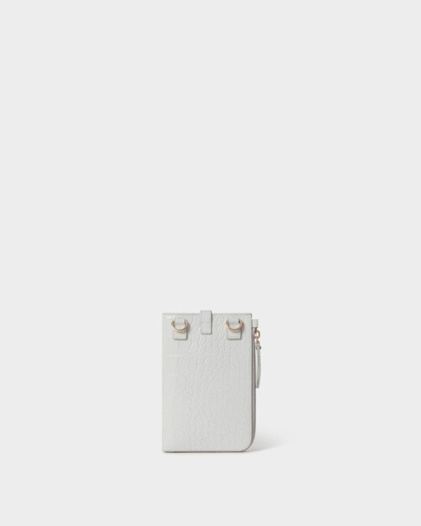 The Wentworth Phone Bag is expertly crafted from Italian croc embossed leather. This versatile design allows you to wear the bag across the body for hands-free travel. The top pocket can be used to store your phone or sunglasses, and the zip compartment opens up with four card slots. Featuring a fully adjustable and detachable leather strap this is a luxurious travel companion.