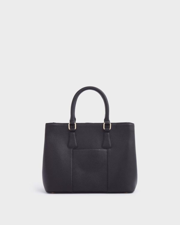 —Features a slip pocket on the reverse and the bag closes at the top with a magnetic popper closure and zip for the central part.