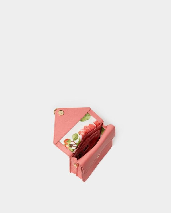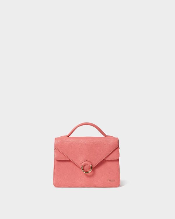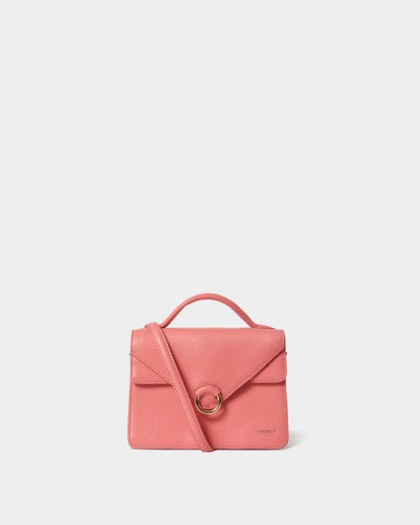—The interior is opened with a gold popper, attached underneath the gold metal ring. Revealing a spacious interior lined in the signature rose OSPREY LONDON lining. Features a smaller zipped pocket inside.