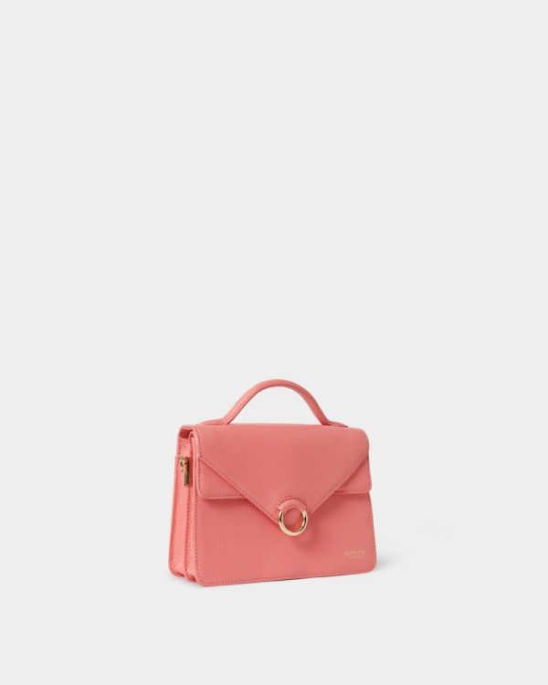 —The envelope design on the front of the bag, is adorned with a gold metal ring for a touch of opulence.