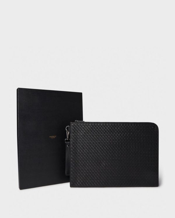 The sophisticated woven pattern of the Woven Large Folio is extremely elegant, making it a standout accessory for any professional setting. Designed to hold your essential documents, tablets, notebooks, and more, the compartment ensures you stay organised and prepared. The sturdy zipper closure keeps your belongings safe and secure, giving you peace of mind on the go. Upgrade the way you carry your professional accessories with this Woven Folio.