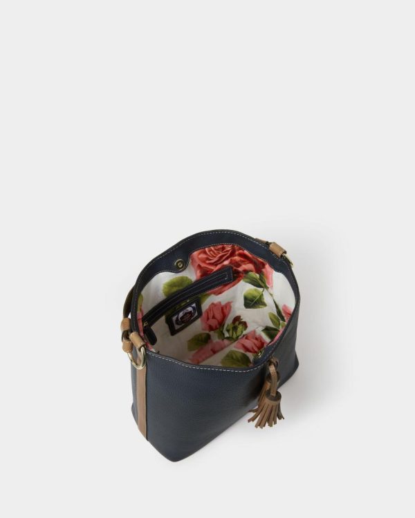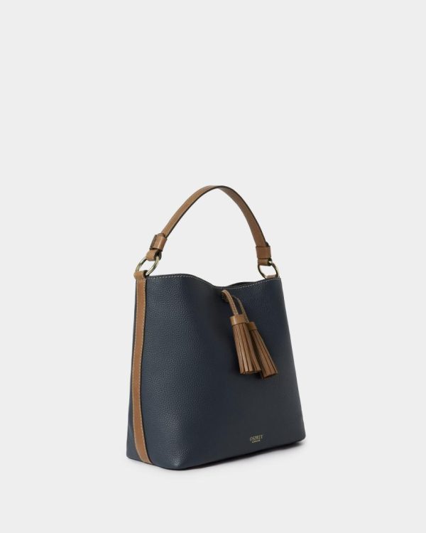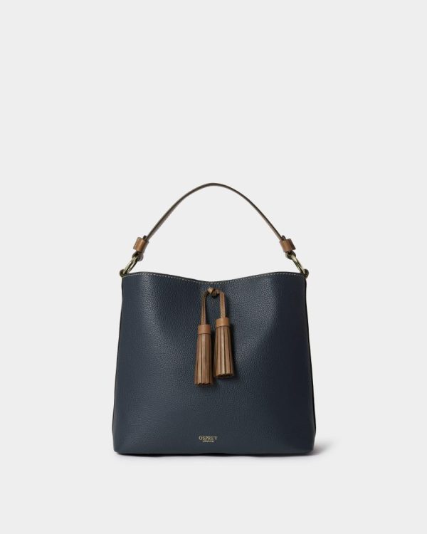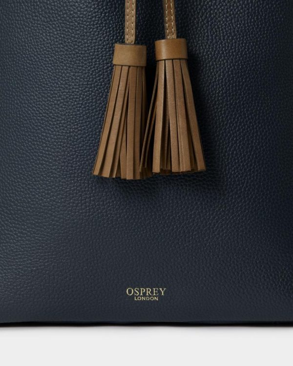 —The front of the bag features a statement sized pair of leather tassels and it bears the gold embossed OSPREY LONDON logo towards the base.
