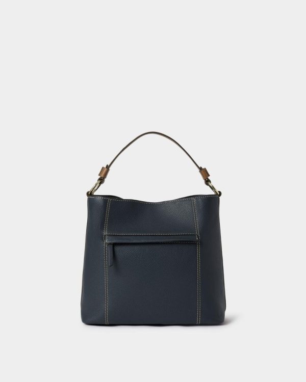 —The equestrian inspired shoulder strap features contrast stitching and is affixed to the bag via two gold metal rings.