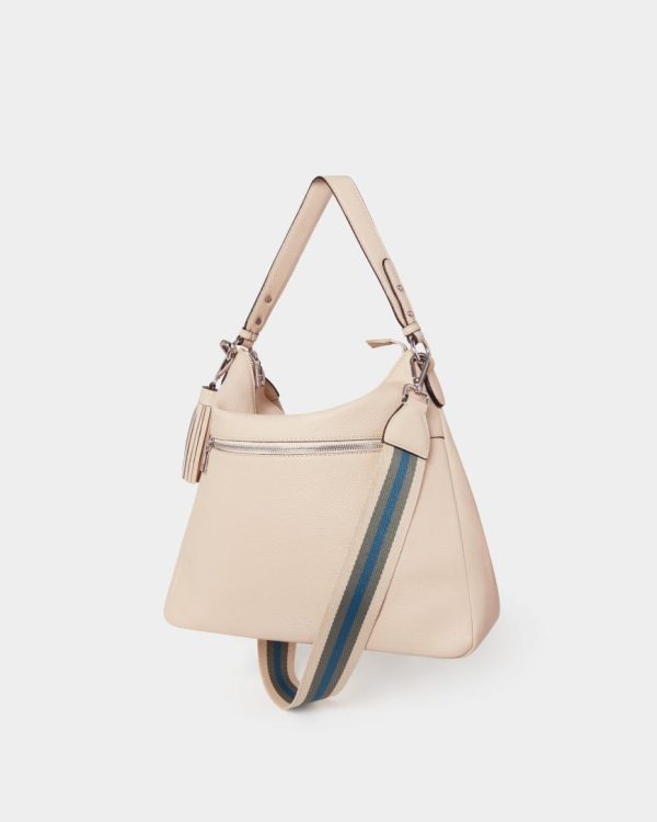 The Stella Leather Hobo is exquisitely crafted in butter-soft Grainy Hide leather. This elegantly understated zip-top shoulder bag is offered with a choice of two straps. The leather strap allows the bag to sit snugly under your arm, whilst the woven ‘guitar’ strap has a more off-duty, preppy feel. Wear both straps together with the guitar strap hanging down for a relaxed, contemporary vibe.