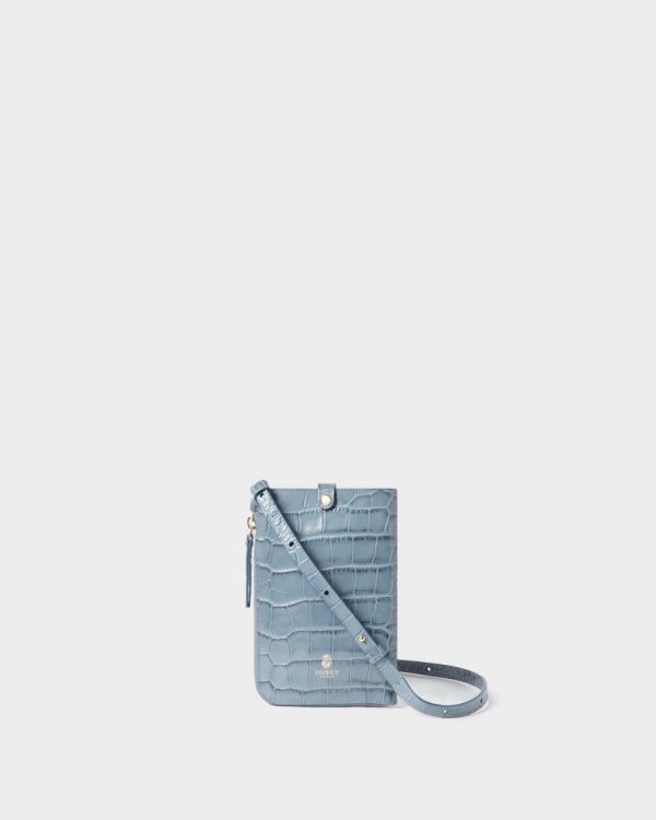 The Wentworth Phone Bag is expertly crafted from Italian croc embossed leather. This versatile design allows you to wear the bag across the body for hands-free travel. The top pocket can be used to store your phone or sunglasses, and the zip compartment opens up with four card slots. Featuring a fully adjustable and detachable leather strap this is a luxurious travel companion.