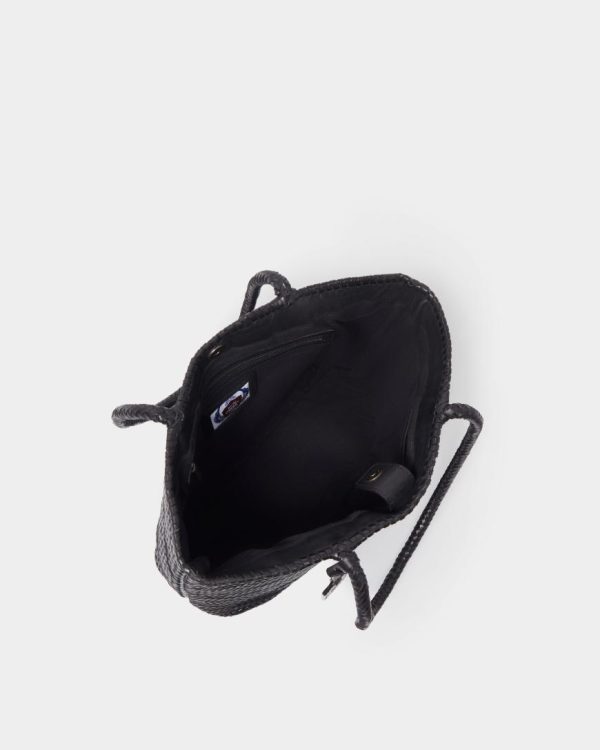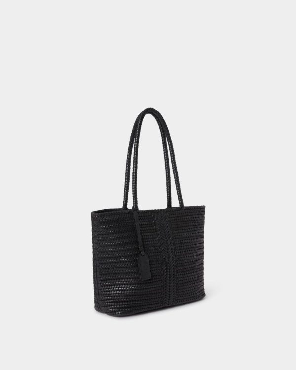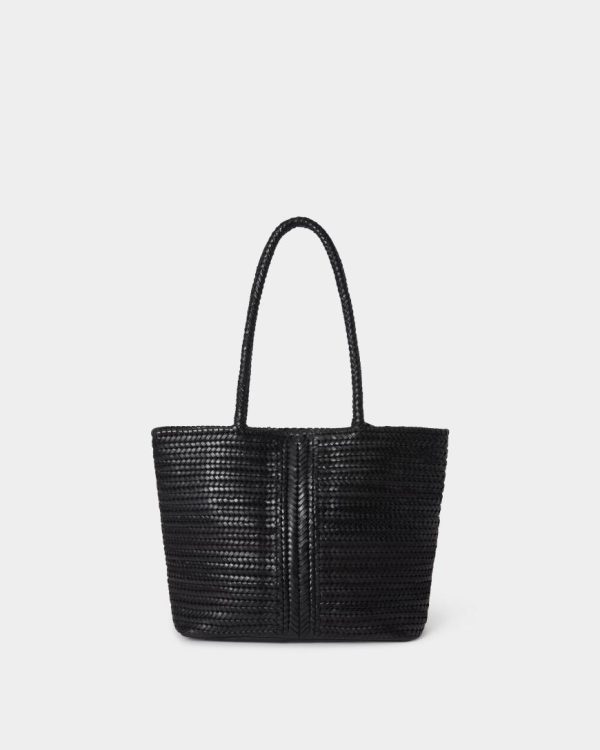 —Features a woven middle seam stitch down the centre of the bag, with two long woven top handles, allowing the bag to be comfortably worn on the shoulder.