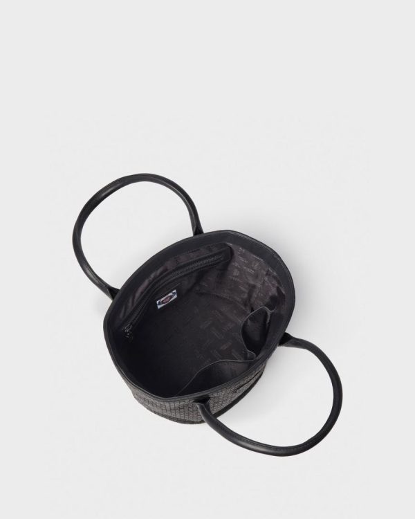 Women Tote Bags | Osprey London The Woven Small Leather Tote Black