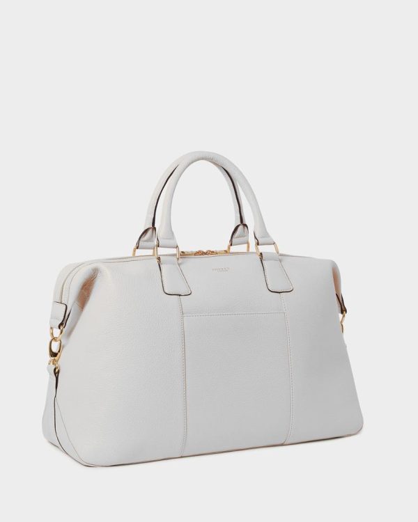 The Large Adaline Leather Weekender is an elegantly understated, softly structured holdall handcrafted in luxurious Grainy Hide leather. With pale gold metal hardware and two rolled leather handles, this elegant weekender also features an adjustable webbing shoulder strap with a leather shoulder pad for added comfort. The perfect travel companion for weekends away and smart, overnight business trips.
